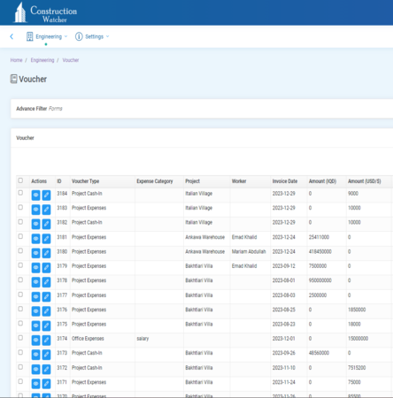 each project have it's own expense sheet to allow project engineer record & extract accurate project expenses.